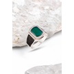 Gümüş Yeşil Akik Taşlı Süslemeli Erkek Yüzük -5109