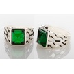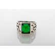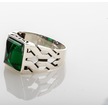 Gümüş Yeşil Baget Kesim Zirkon Taşlı Kare Model Erkek Yüzük
