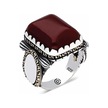 Gümüş Zirkon Bordo Akik Taşlı Kare Erkek Yüzük Çok Renkli