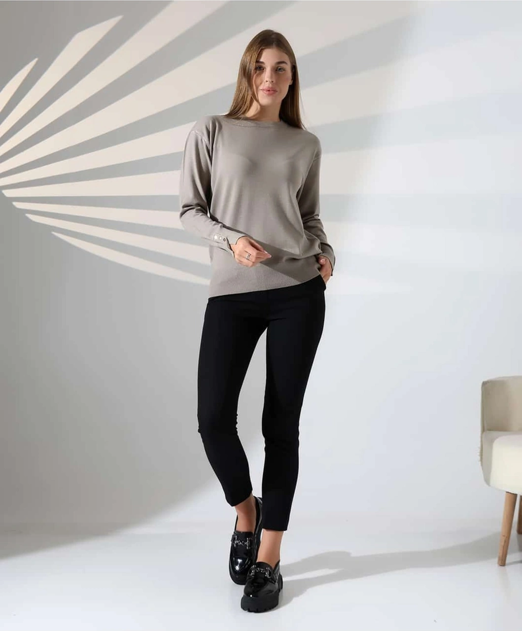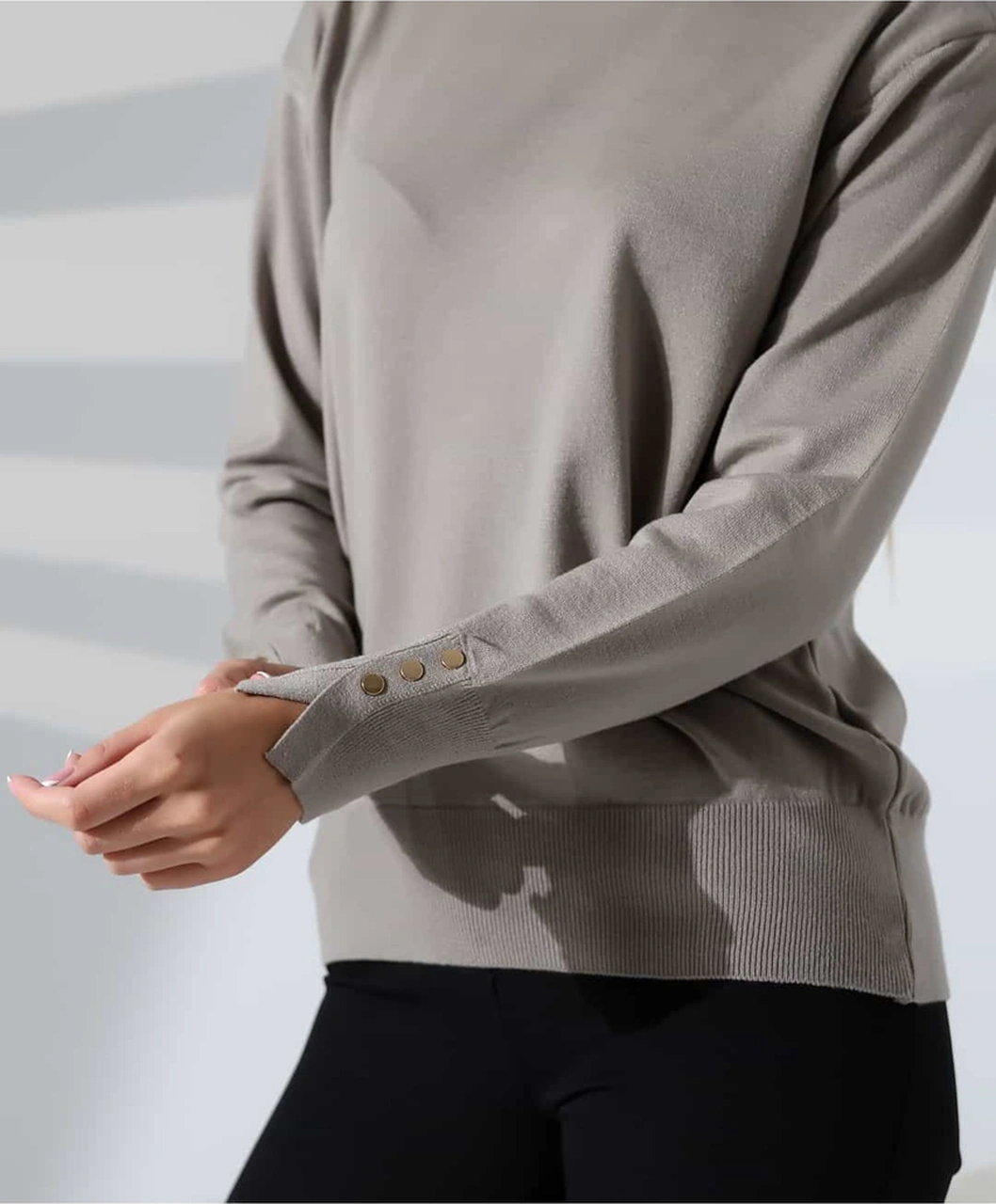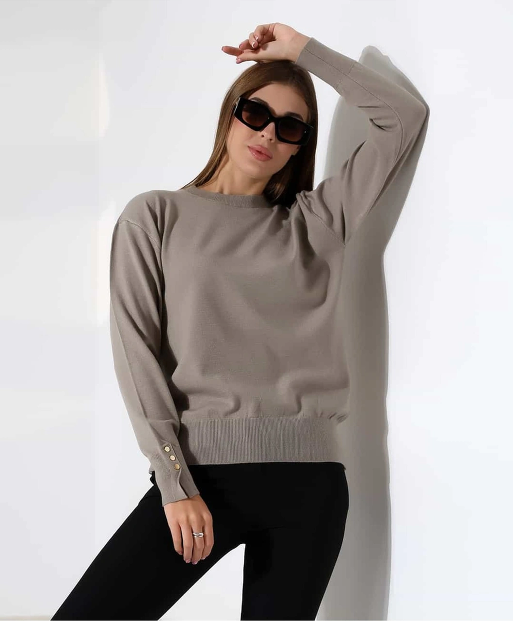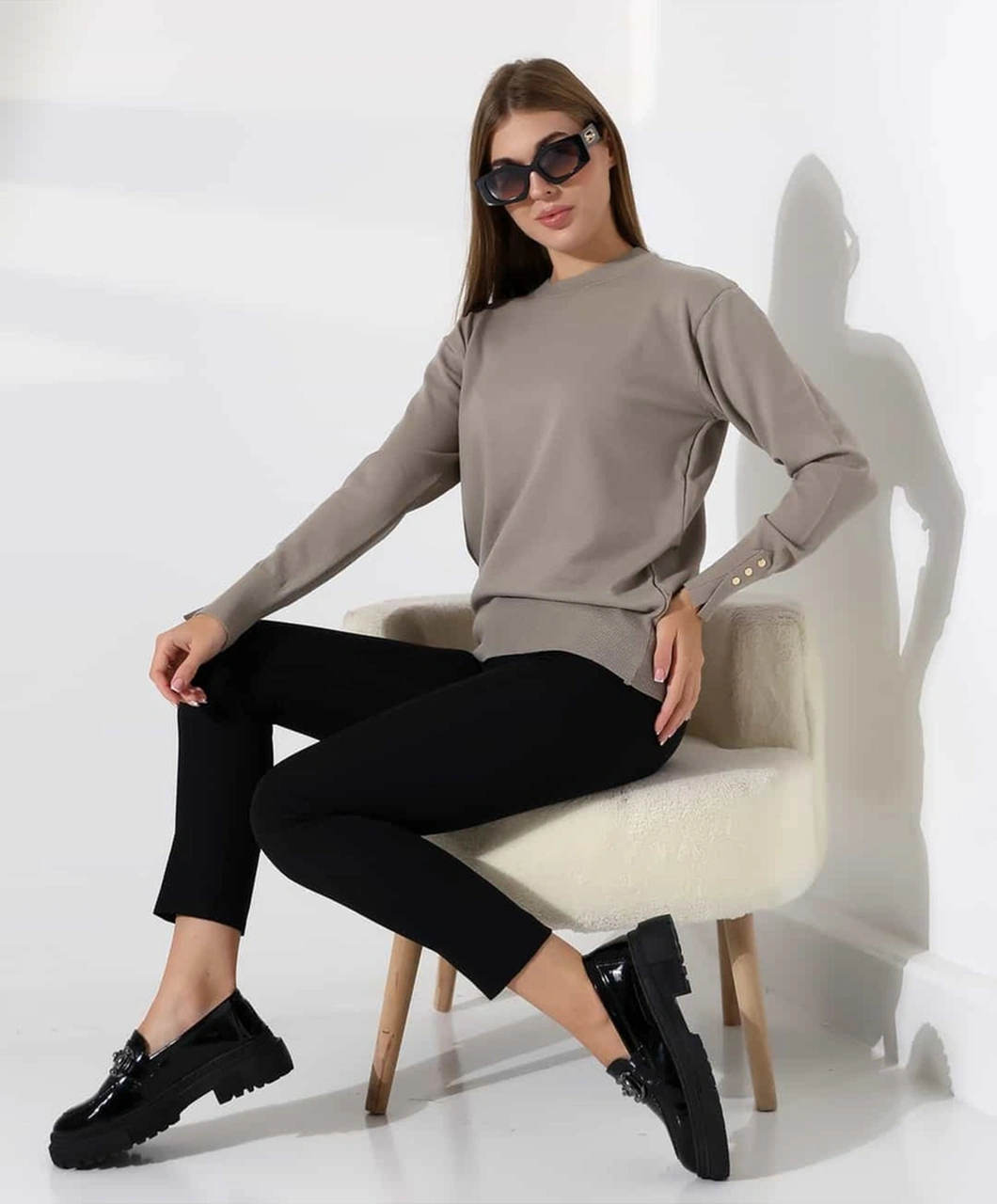Gündelik Şıklık Kol Düğme Detay Triko Kazak Vizon