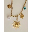 Güneş İnci Firuze Taş Model Charmlı Yaz Beach Plaj Tatil Kolye 46cm Gold