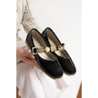 Günlük Kadın Babet Altın Para İnci Toka Ses Yapmaz Ortopedik Hafif Rahat Ayakkabı 110 Siyah
