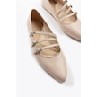 Günlük Kadın Babet Ayarlanabilir Tokalı Sivri Burunlu Sade Rahat Şık Hafif Ayakkabı S-420 Bej