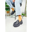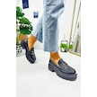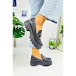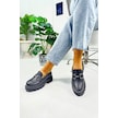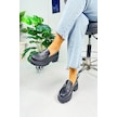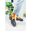 Günlük Kadın Loafer V Tokalı Kalın Topuklu Tırtıklı Tabanlı Oval Burunlu Makosen Ayakkabı 7455 - 7453 7453-siyahcilt