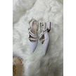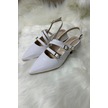 Günlük Kadın Rugan Sivri Burunlu Ayarlanabilir Kemerli Baretli Kısa Blok Topuklu Ayakkabı 455 - 54 Beyaz