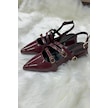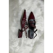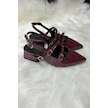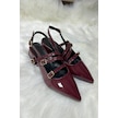 Günlük Kadın Rugan Sivri Burunlu Ayarlanabilir Kemerli Baretli Kısa Blok Topuklu Ayakkabı 455 - 54 Bordo