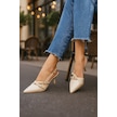 Günlük Kadın Sivri Burun Ayarlanabilir Kemer Detaylı Arkası Açık Klasik İnce Topuk Ayakkabı 922-64 Krem