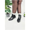 Günlük Kadın Siyah Bot Kalın Oval Burunlu Lastikli Alçak Topuklu Tırtıklı Taban Kısa Bootie 425 Siyah