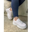 Günlük Kadın Sneaker Kalın Yüksek Taban Bağcıklı Rahat Tiger Şeritli Spor Ayakkabı 032 01 - Beyaz