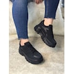 Günlük Kadın Sneaker Kalın Yüksek Taban Bağcıklı Rahat Tiger Şeritli Spor Ayakkabı 032 04 - Siyah Nubuk