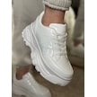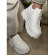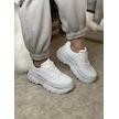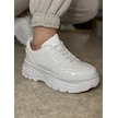 Günlük Kadın Sneaker Kalın Yüksek Taban Bağcıklı Rahat Tiger Şeritli Spor Ayakkabı 032 07 - Beyaz Rugan