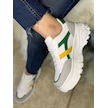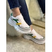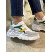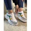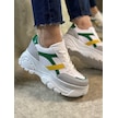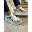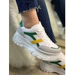 Günlük Kadın Sneaker Kalın Yüksek Taban Bağcıklı Rahat Tiger Şeritli Spor Ayakkabı 032 09-taş Yeşil Sarı