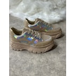 Günlük Kadın Sneaker Kalın Yüksek Taban Bağcıklı Rahat Tiger Şeritli Spor Ayakkabı 032 14- Nut Rugan Holo