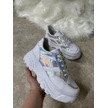 Günlük Kadın Sneaker Kalın Yüksek Taban Bağcıklı Rahat Tiger Şeritli Spor Ayakkabı 032 15 - Beyaz Rugan Holo