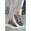 Günlük Kadın Sneaker Örgü Bağcıklı Hafif Kalın Yüksek Balon Taban Yürüyüş Spor Ayakkabı 5750 Leopar