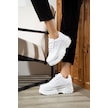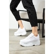 Günlük Kadın Spor Ayakkabı Yüksek Kalın Taban 6 Cm Suni Deri Sneaker 001 Beyaz