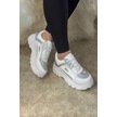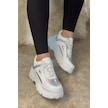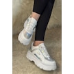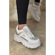 Günlük Kadın Spor Ayakkabı Yüksek Kalın Taban 6 Cm Suni Deri Sneaker 001 Beyaz Hologram