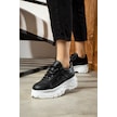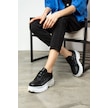 Günlük Kadın Spor Ayakkabı Yüksek Kalın Taban 6 Cm Suni Deri Sneaker 001 Siyah - Beyaz
