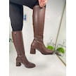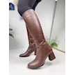 Günlük Kadın Yüksek Kalın Topuklu Fermuarlı Diz Altı Rahat Çizme 3001 Acı Kahve