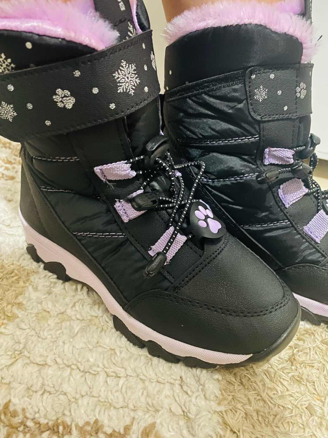 Günlük Kız Çocuk Kar Botu Cırtlı Lastik Bağcıklı Kürklü Kar Desenli Kalın Tırtıklı Taban Bootie 014 Siyah Lila