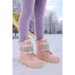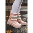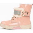 Günlük Kız Çocuk Rugan Bot Fermuarlı Lastik Bağcıklı Kürk Ve Taş Detaylı Kaymaz Taban Bootie 391 Pudra-rugan