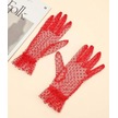 Güpürlü Tüllü Puantiyeli Şeffaf Parti Kostüm Kına Düğün & Gelin Eldiveni Kırmızı Çok Renkli