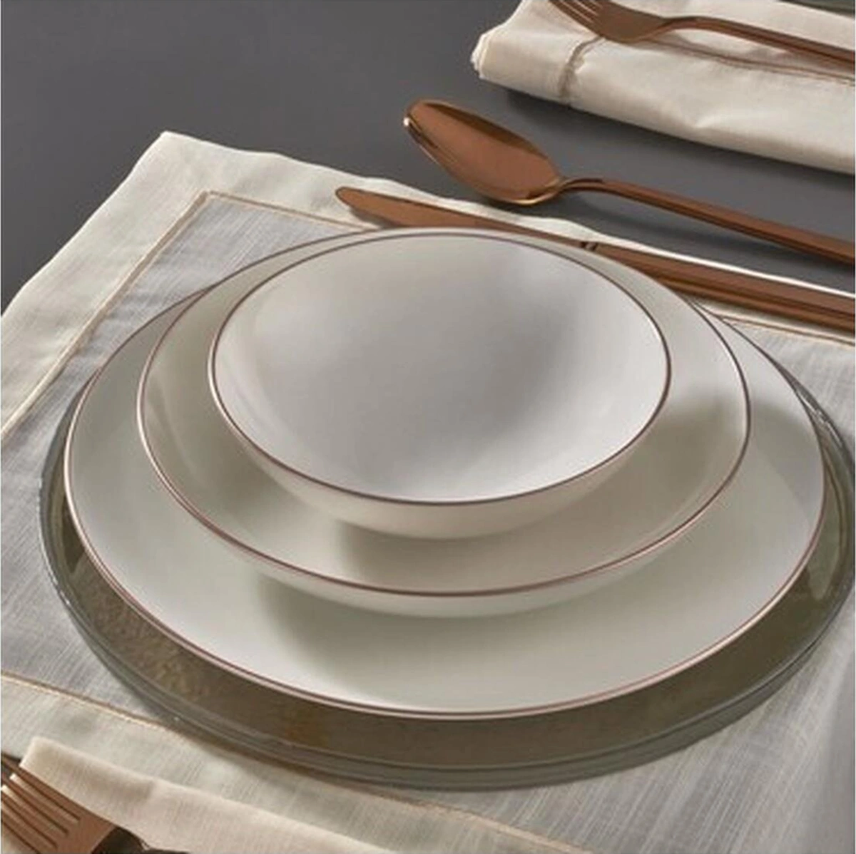Güral Porselen Güral Atina 18 Parça 6 Kişilik Bone Yemek Takımı Cooper Bakır Süt Beyazı
