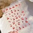 Güzel Kırmızı Meyve Çilek Kiraz Ilmek Aşk Kalp Yıldız İpek Kurdele 5d Nail Art Çıkartmalar Şık Kendinden Yapışkanlı Manikür Çıkartması Nikel Serbest Beyaz