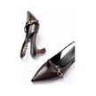 H-470 Kahve Rugan Baret Tokalı Arkası Açık Günlük Kadın Sandalet Kahve