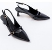 H-470 Siyah Rugan Baret Tokalı Arkası Açık Günlük Kadın Sandalet Siyah