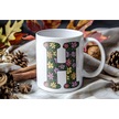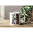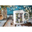 H Baş Harf Çiçek Desenleri İle Natural Tarz Kupa Bardak - Kişiye Özel Çiçekli Kahve Çay Bardak - Beyaz