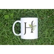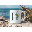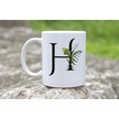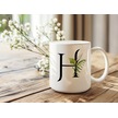 H Harf Zarif Yaprak Desenli Kupa Bardak - Naturel Sade Alfabe Harfli Bardak - Kişiye Özel Hediye Beyaz