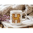 H Harfi Bal Arısı Tasarım Kupa Bardak - Bal Ve Petek Desenli Kişiye Özel Kahve Kupası - Hediyelik Beyaz