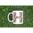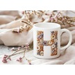 H Harfi Çiçek Desenli Kupa Bardak - Alfabe Harfleri İle Doğal Çiçekli Kupa - Hediye Fikir Beyaz