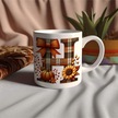 H Harfi Ekose Ve Sonbahar Temalı Kupa Bardak - Kişiye Özel Sıcak Tonlar Alfabe Kupa - Hediye Beyaz
