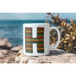 H Harfi Etnik Desenli Kupa - Afrika Tarzı Kahve Çay Kupası - Hediyelik - Black History Beyaz