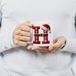 H Harfi Yılbaşı Temalı Bardak 330 Ml Harfli Kişiye Özel Hediye - Yeniyıl / Noel Şapka Tasarım Beyaz