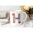 H Harfli Retro Çiçekli Kupa Bardak - Patchwork Tarz Yamalı Desenli İsme Özel Kupa - Hediye Beyaz