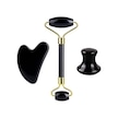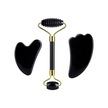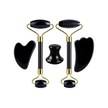 H Tipi Doğal Obsidyen Yüz Masajı Rulosu Gua Sha Kazıyıcı Seti Guaj Taşı Yüz Yeşim Rulo Masajı Guaj Kazıyıcı Yüz Masajı 2pupcı Çok Renkli