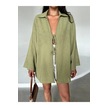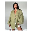 Haki %100 Keten Bağcık Detaylı Kimono Bluz - 5218 Haki