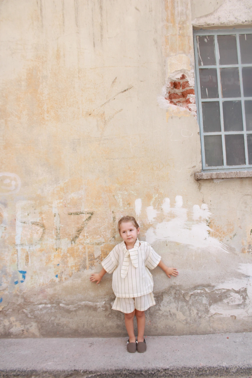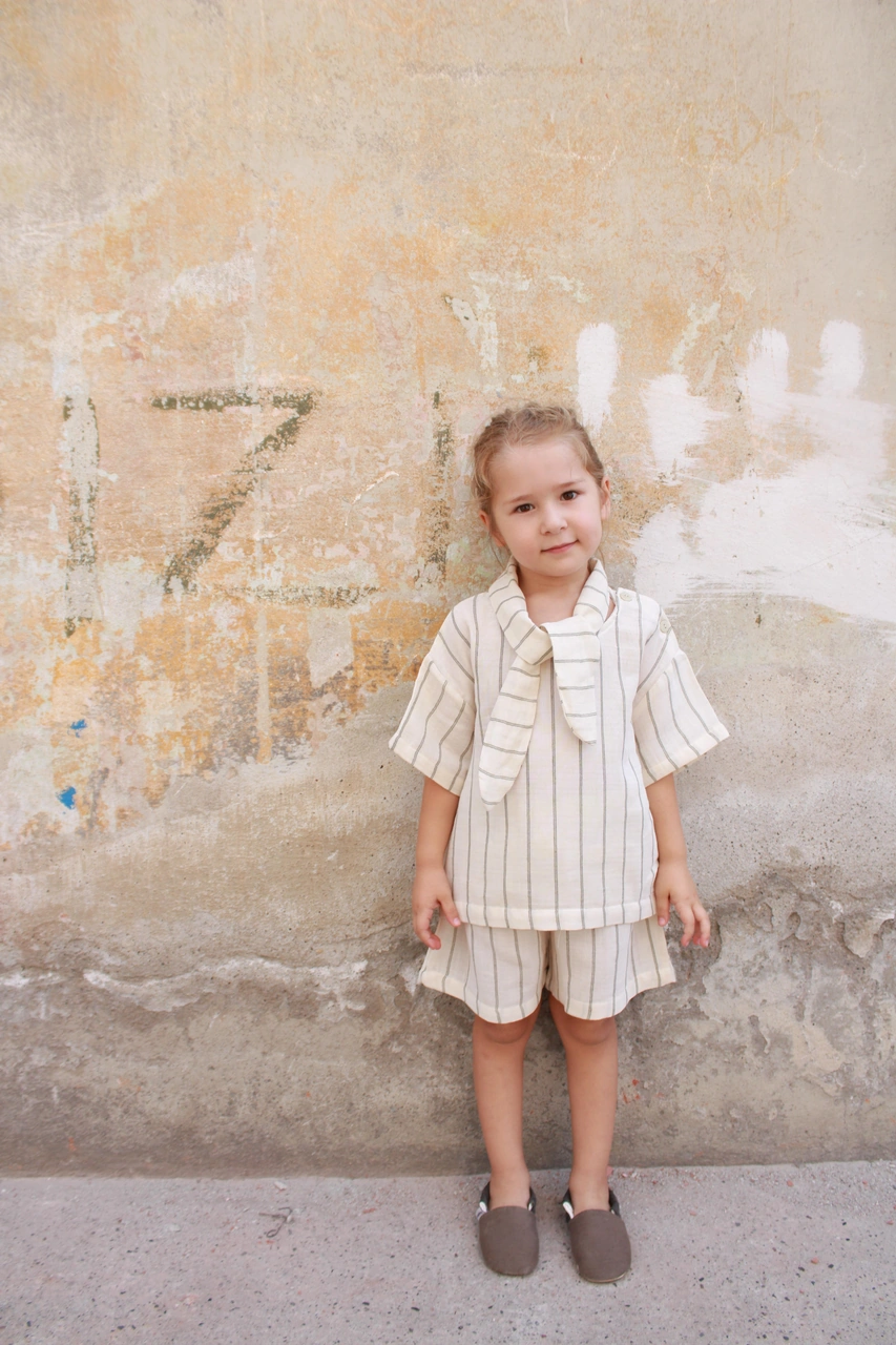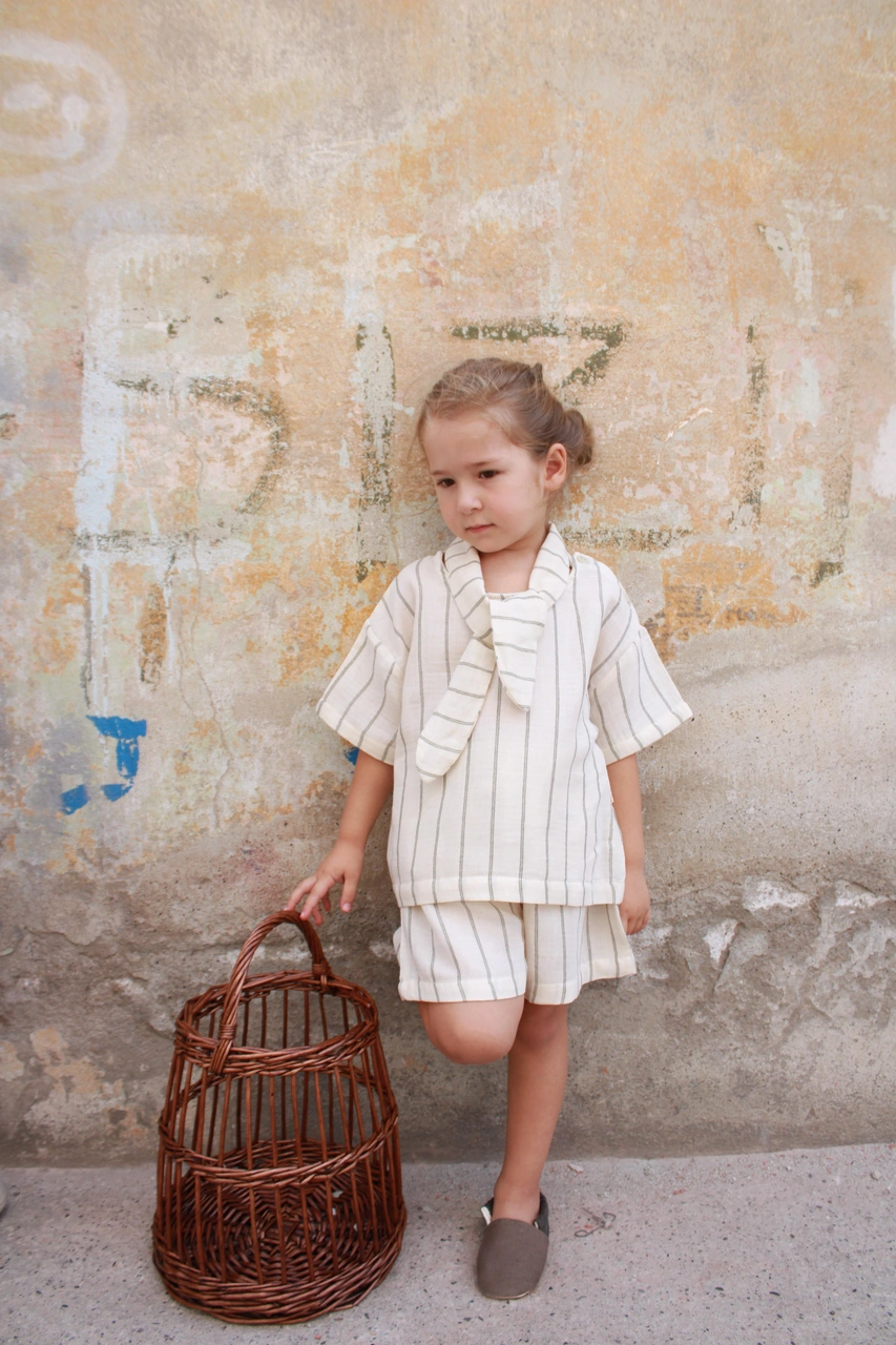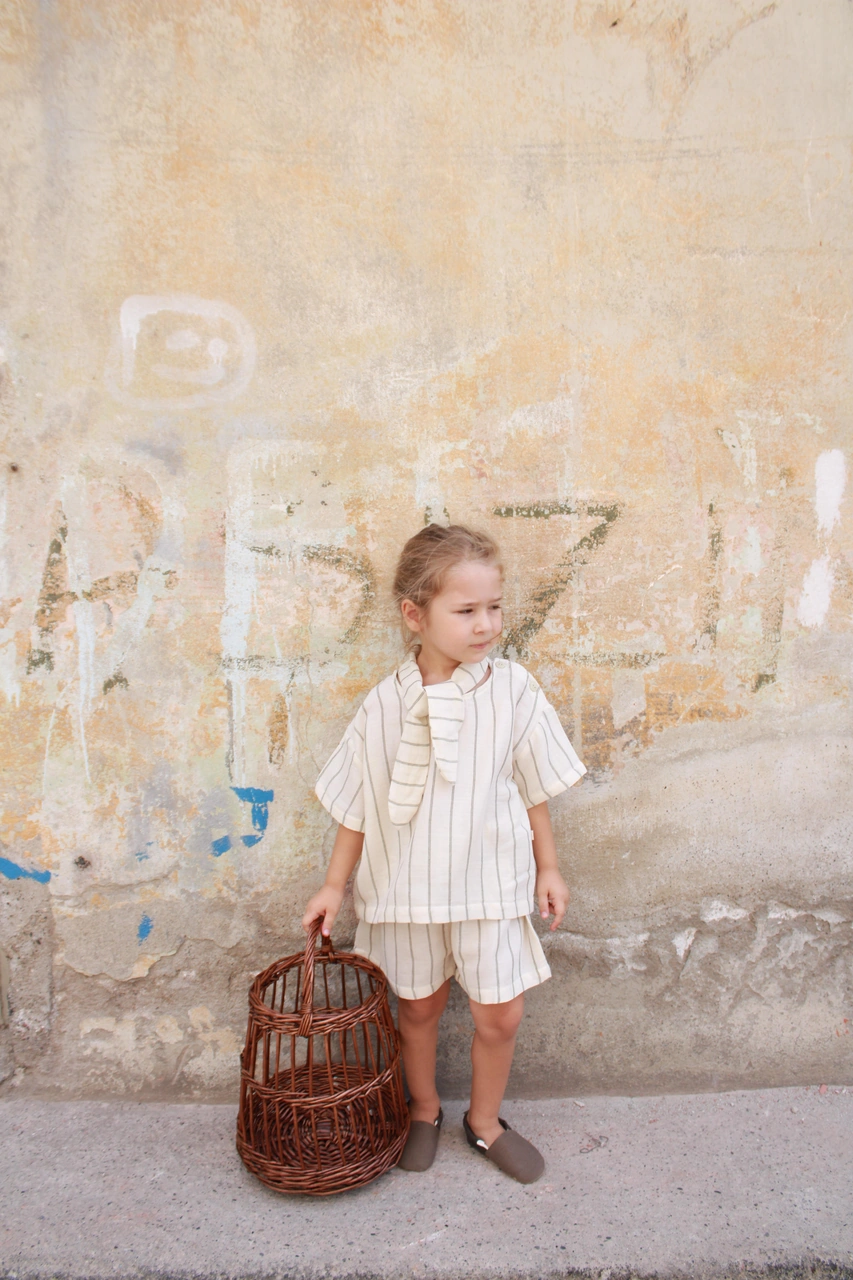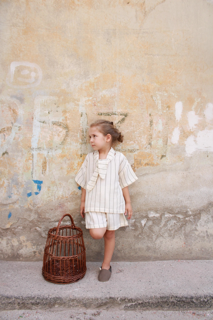 Haki Çizgili Yaka Bağlamalı Alt Üst Takım Haki