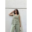 Haki İthal Müslin Kumaş, Basic, Katlı, Salaş Askılı Bluz & Atlet Haki