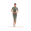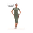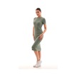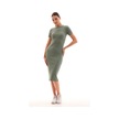 Haki Kısa Kollu Diz Altı Fitilli Esnek Kalem Elbise - 115 Cm