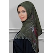 Haki Pratik Hazır Geçmeli Tesettür Eşarp Kesik Elyaf Piliseli Çiç (545491593) Haki