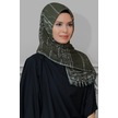 Haki Pratik Hazır Geçmeli Tesettür Eşarp Kesik Elyaf Piliseli Çiz Haki