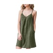 Haki Zanzea Bayan Yaz Kolsuz V Yaka Pamuk Basic İnce Mini Kayma Elbise Haki