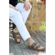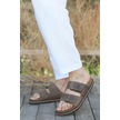 Hakiki Crazy Deri Eva Taban Kalın Çift Cırt Cırtlı Ortopedik Tasarım Erkek Terlik Sandalet