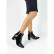 Hakiki Deri Acı Kahve Rugan Fermuarlı Kalın Topuk Kadın Bot Acı Kahve