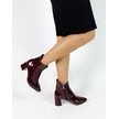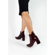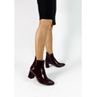 Hakiki Deri Bordo Rugan Fermuarlı Kalın Topuk Kadın Bot Bordo