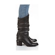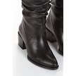 Hakiki Deri Büzgülü Körüklü Kalın Topuk Kadın Çizme Siyah